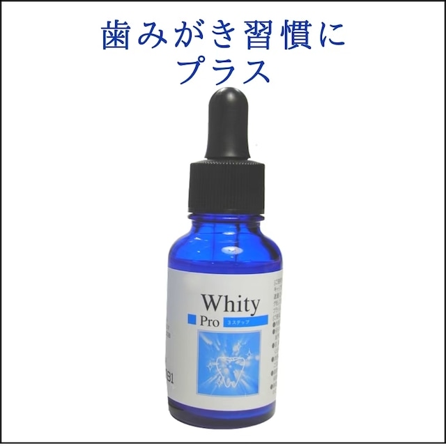 ◆簡単3ステップ理論 STEP1:ポリリン酸、ピロリン酸で歯の汚れを除去 STEP2:歯のエナメル質と同質の白い微粒子(カルシウム、ヒドロキシアパタイト)で、コーティング STEP3:ポリマーで歯に被膜を形成し、ホワイトニングをサポート 簡単3ステップ理論を採用。 ブラッシングをするだけで、より白く美しい歯を目指すことが出来ます。 商品名 【3ヵ月集中ケアセット】 ホワイティプロ まずは3ヶ月集中的にホワイトニングしたい!という方 3ヵ月集中ケアセットがお得です!! ★単品購入より¥1,034税込お得になります!★ 内容量 30mL×3本セット (1本 : 1日朝晩のご使用で約1~1か月半分) ご使用方法 数回振ってからご使用ください。 スポイト下のキャップ部分を左に回し開けてください。 通常の歯磨き後、スポイトで適量(3~5滴)をハブラシにとり、歯や歯茎のブラッシングをしてください。 ブラッシング後は軽く口をすすいでください。 ご使用上の注意 ●内服液ではありませんので、飲まないでください。 ●何らかの異常を感じた場合は、いったん使用を中止してください。 ●目、鼻等に入った場合は、すぐに水で洗い流してください。 ●直射日光、高温多湿、乳幼児の手の届かないところに保管し、開封後はなるべく早くご使用ください。 ●数回振ってからご使用ください。 成分 水、グリセリン、BG、PEG-150、キシリトール、グリチルリチン酸2K、レモン果実エキス、パパイア果実エキス、カンゾウ根エキス、ヒドロキシアパタイト、炭酸Ca、ポリリン酸Na、(メタクリル酸グリセリルアミドエチル/メタクリル酸ステアリル)コポリマー、オリーブ葉エキス・ヒバマタエキス、クレマティス葉エキス、セイヨウナツユキソウ花エキス、スギナエキス、セイヨウキズタ葉/茎エキス、センチフォリアバラ花エキス、PEG-60水添ヒマシ油、PPG-6デシルテトラデセスー30、ハッカ油、ピロリン酸 4K、フィチン酸、キサンタンガム、メチルパラベン 生産国 日本